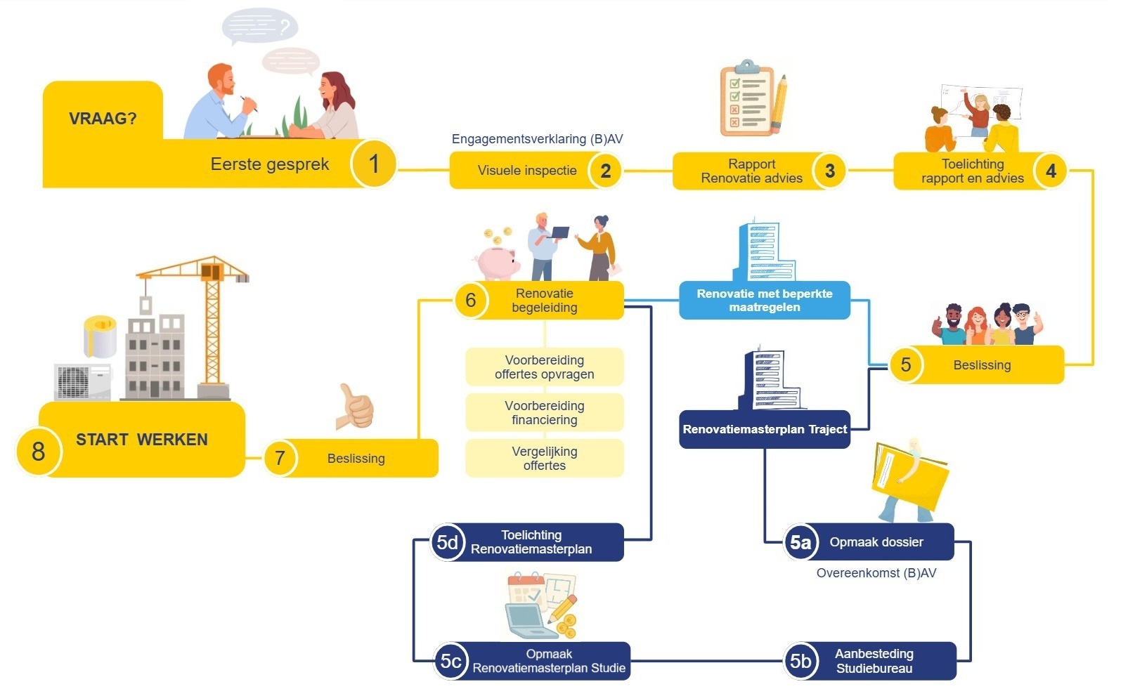 - begeleiding tijdens het verdere renovatietraject